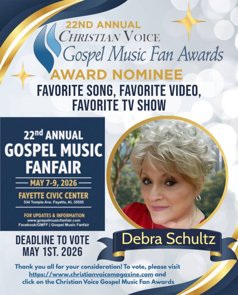 Debra is also up for nominations on a different platform called the Singing News Fan Awards. If you are a subscriber to the Singing News Magazine or the Singing News TV app, you can vote.